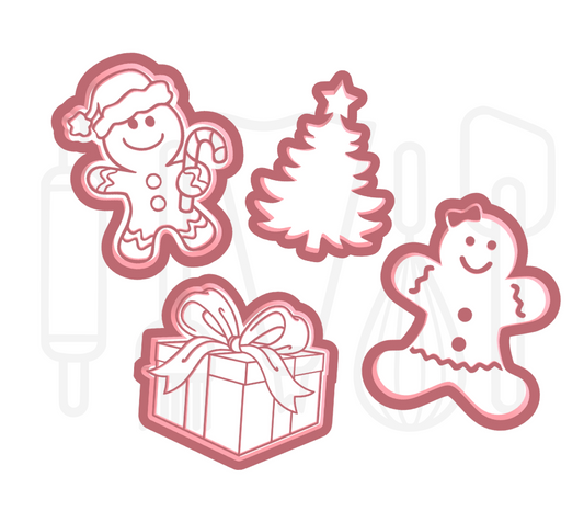 Kerstklokken met hulst uitsteker + stempel - 3D-geprint