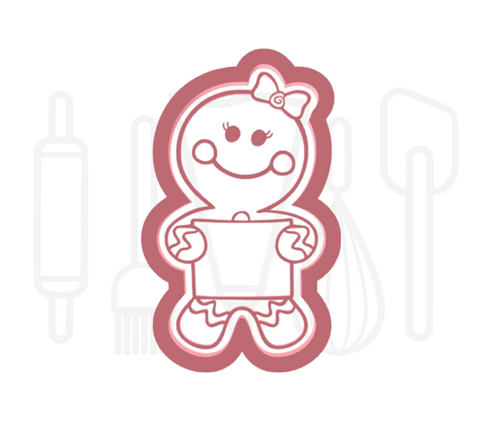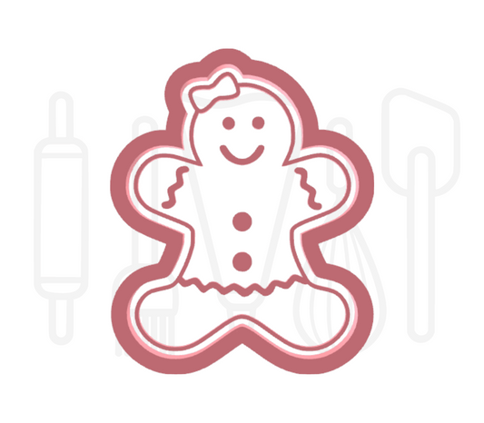 Gingerbread poppetje met jurkje uitsteker + stempel - 3D geprint