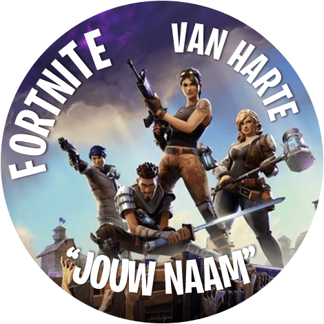 Fortnite eetbare print rond 20 cm - Van harte + eigen naam