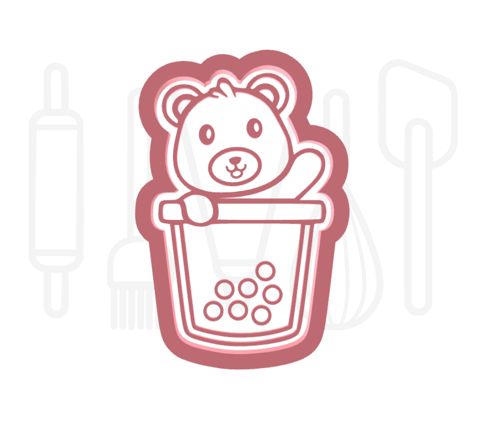 Beertje in bubbletea uitsteker + stempel - 3D-geprint