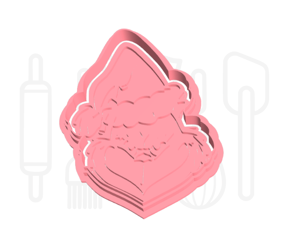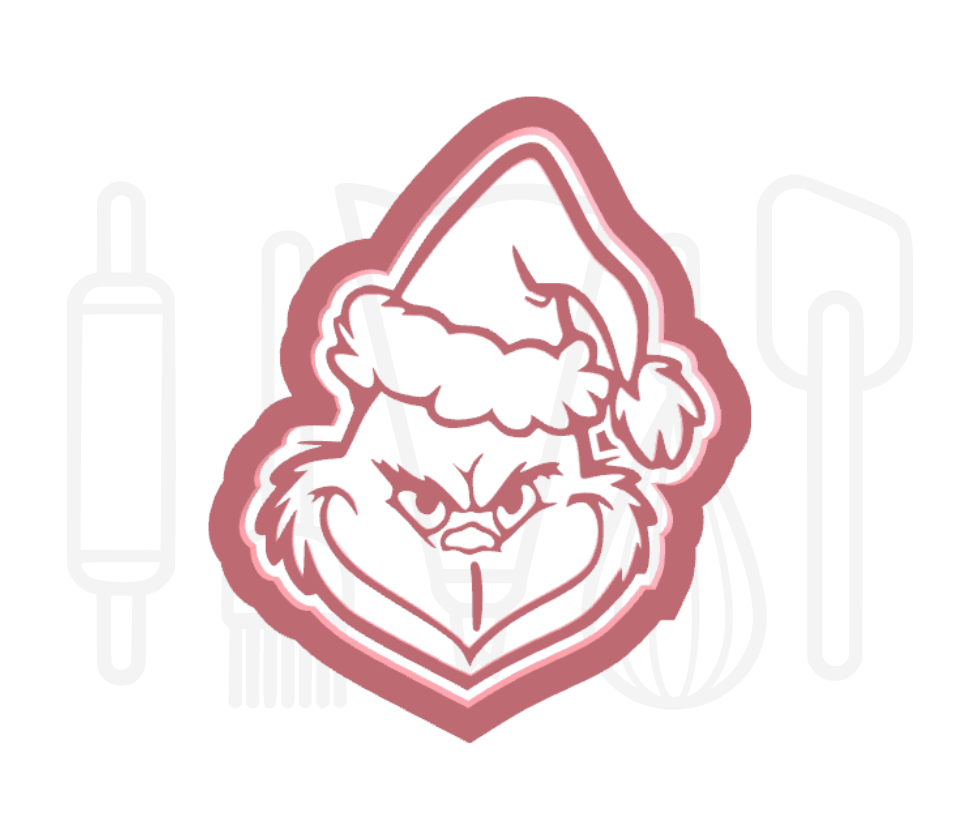 De Grinch met kerstmuts uitsteker + stempel - 3D-geprint