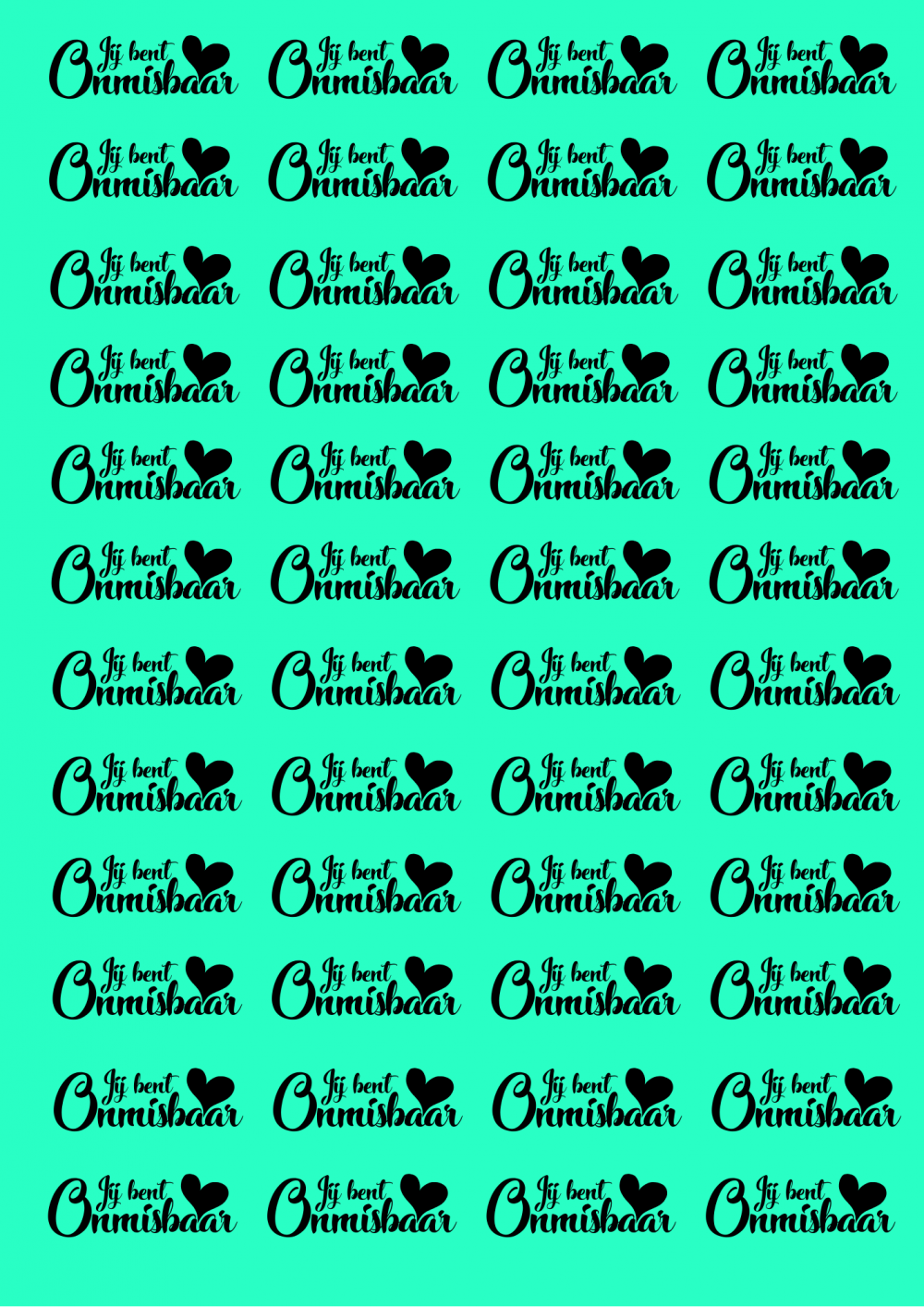 48x "Jij bent Onmisbaar" op Frosty sheet - turquoise
