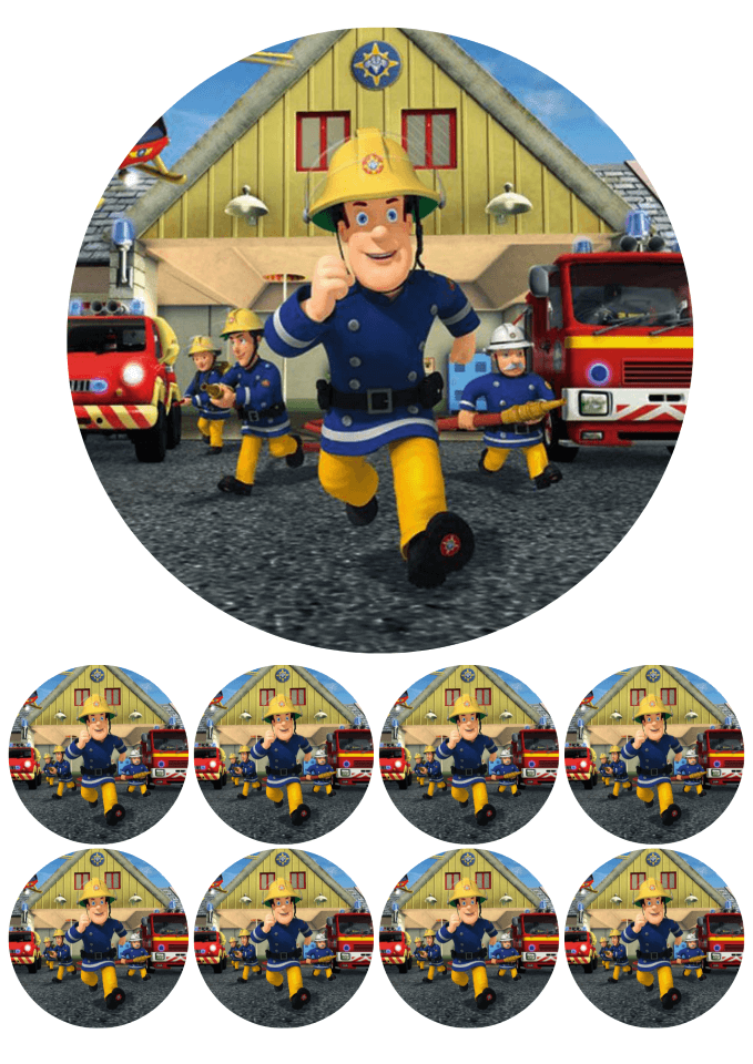 Eetbare print - 17,5 cm rond + 8 rondjes 5 cm - Brandweerman