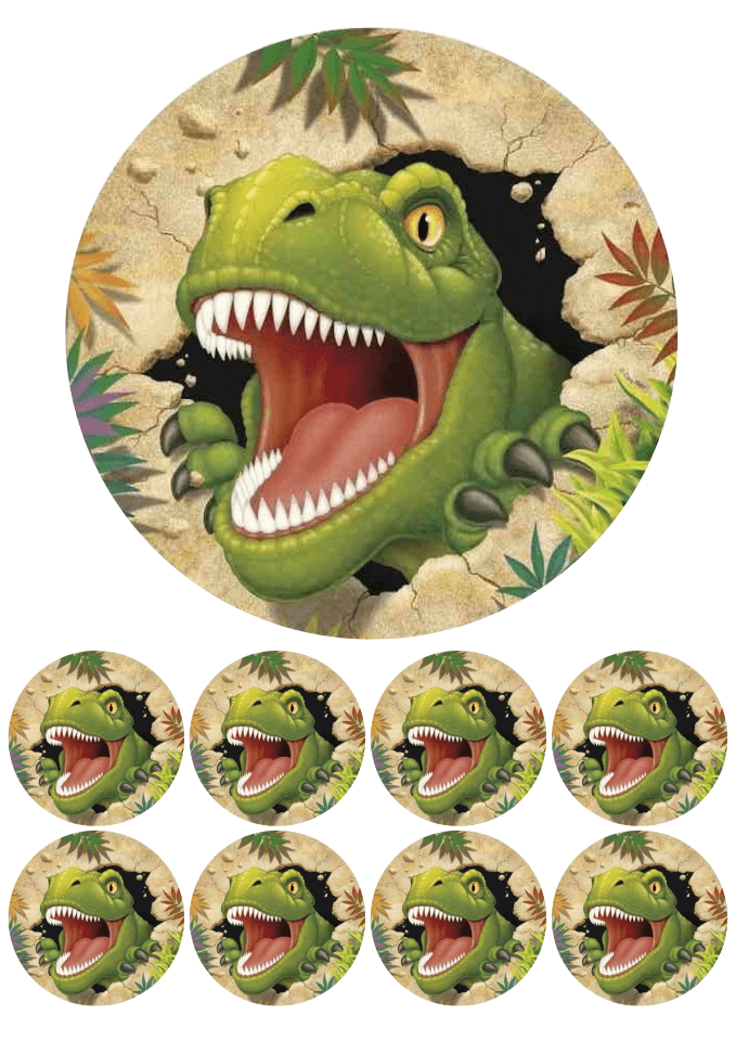 Eetbare print - 17,5 cm rond + 8 rondjes 5 cm - Dinosaurus