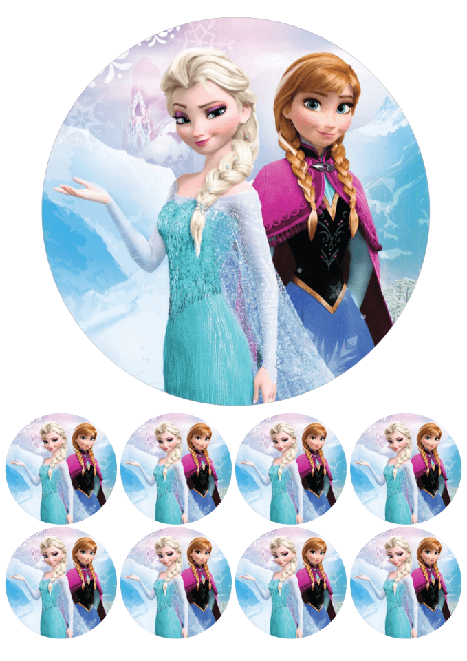 Eetbare print - 17,5 cm rond + 8 rondjes 5 cm - IJsprinses 2