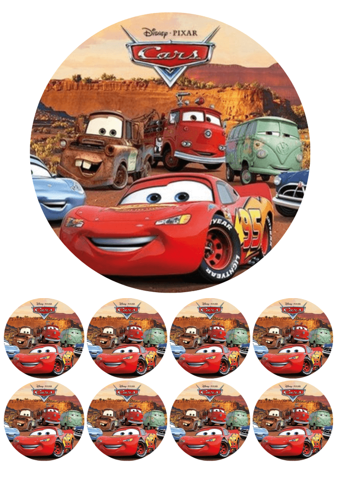 Eetbare print - 17,5 cm rond + 8 rondjes 5 cm - Raceauto