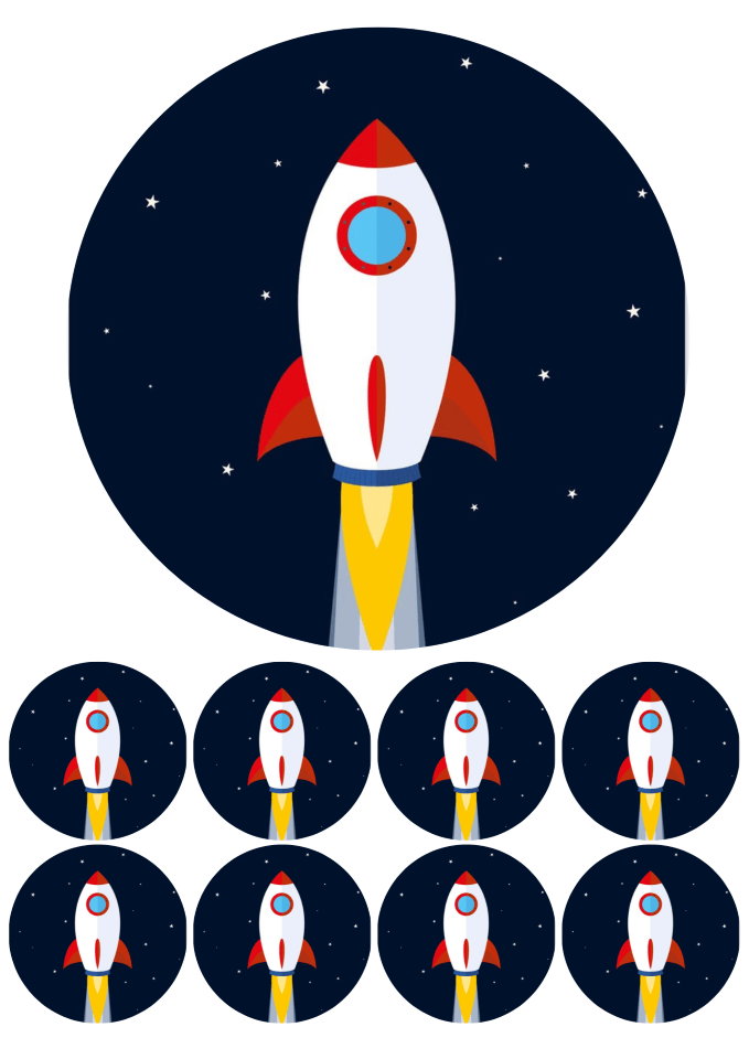 Eetbare print - 17,5 cm rond + 8 rondjes 5 cm - Raket