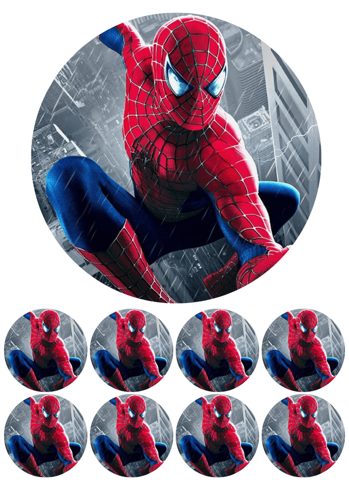 Eetbare print - 17,5 cm rond + 8 rondjes 5 cm - Spinnenman 2