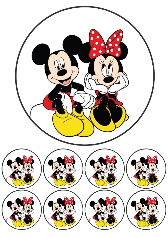 Eetbare print - 17,5 cm rond + 8 rondjes 5 cm - Zittend muizen koppel