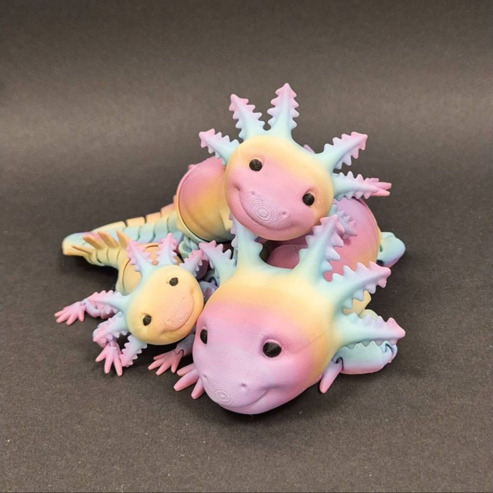 Deze schattige 3D-geprinte axolotl brengt de mysterieuze en schattige uitstraling van dit bijzondere waterdier tot leven. Zijn flexibele ontwerp zorgt ervoor dat de onderdelen soepel bewegen, waardoor hij een speels en levendig karakter krijgt.