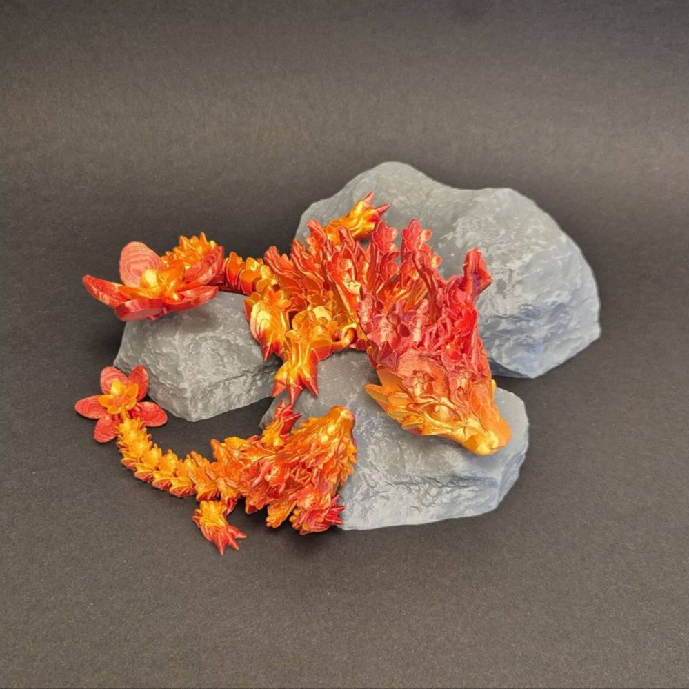 Deze unieke flexibele 3D-geprinte draak is geïnspireerd door de zachte schoonheid van de kersenbloesem. Met haar sierlijke vormen en speelse bewegingen lijkt ze magisch tot leven te komen! Subtiele roze tinten en verfijnde details maken haar een echte blikvanger.