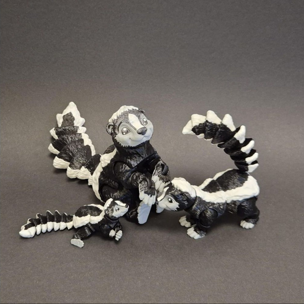 Dit schattige 3D-geprinte stinkdier is helemaal niet stinky, maar juist een speelse en unieke toevoeging aan je collectie! Zijn gedetailleerde vorm en vloeiende bewegingen maken hem bijna levensecht. Zijn flexibele ontwerp zorgt ervoor dat de onderdelen soepel bewegen, wat hem een speels en levendig karakter geeft.