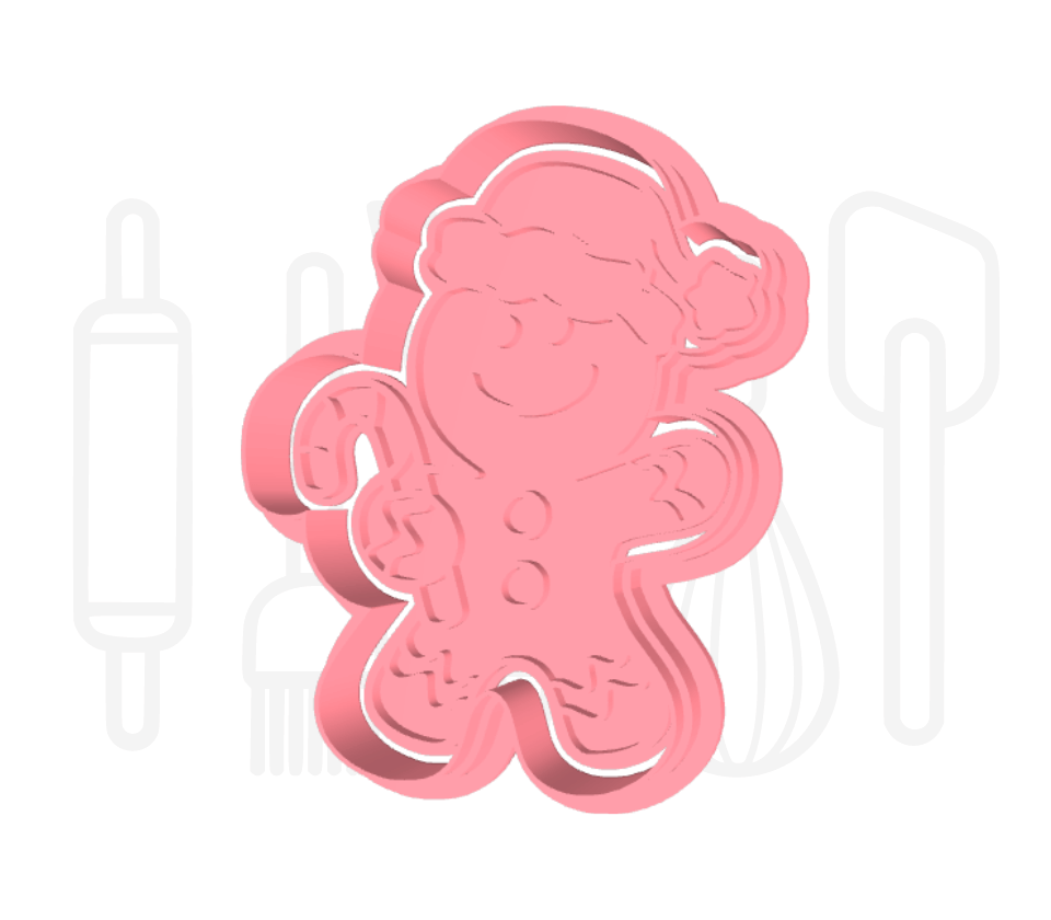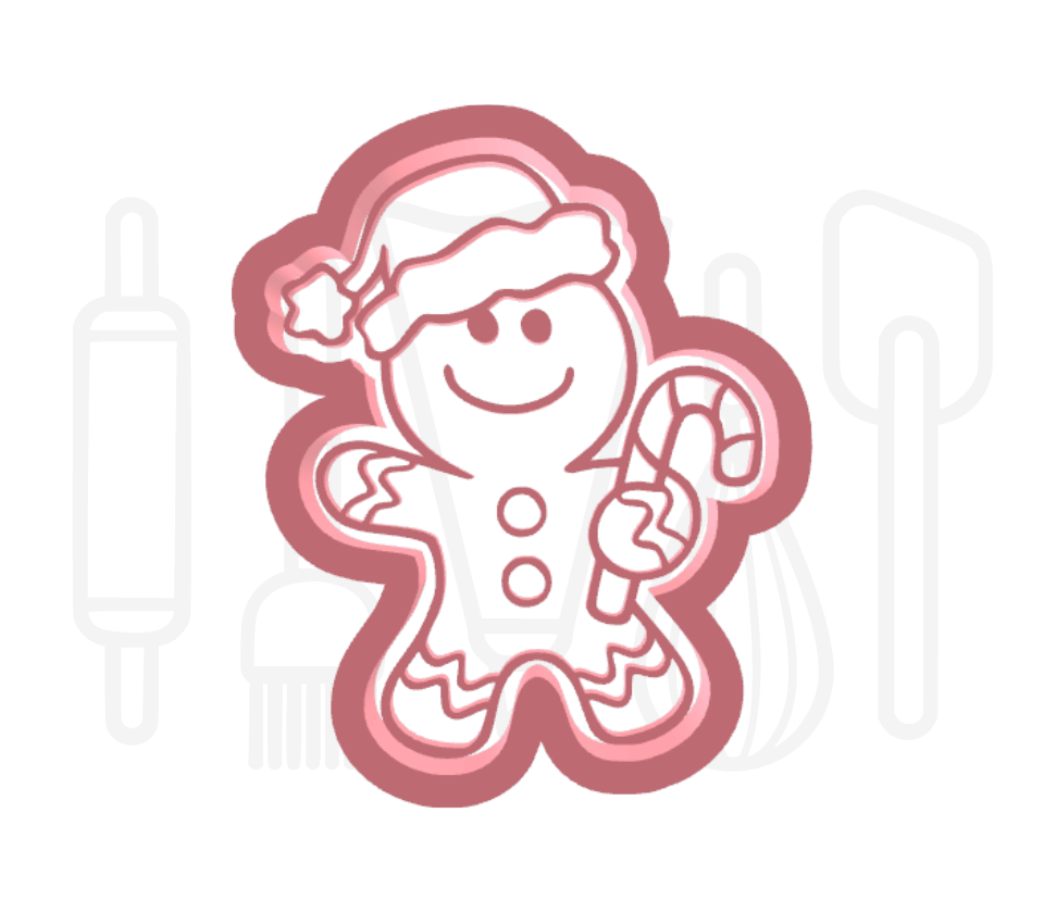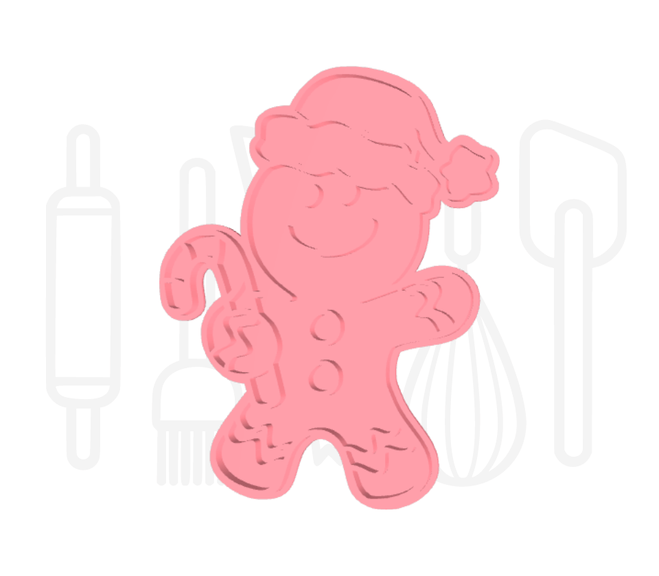 Gingerbread poppetje met kerstmuts uitsteker + stempel - 3D geprint