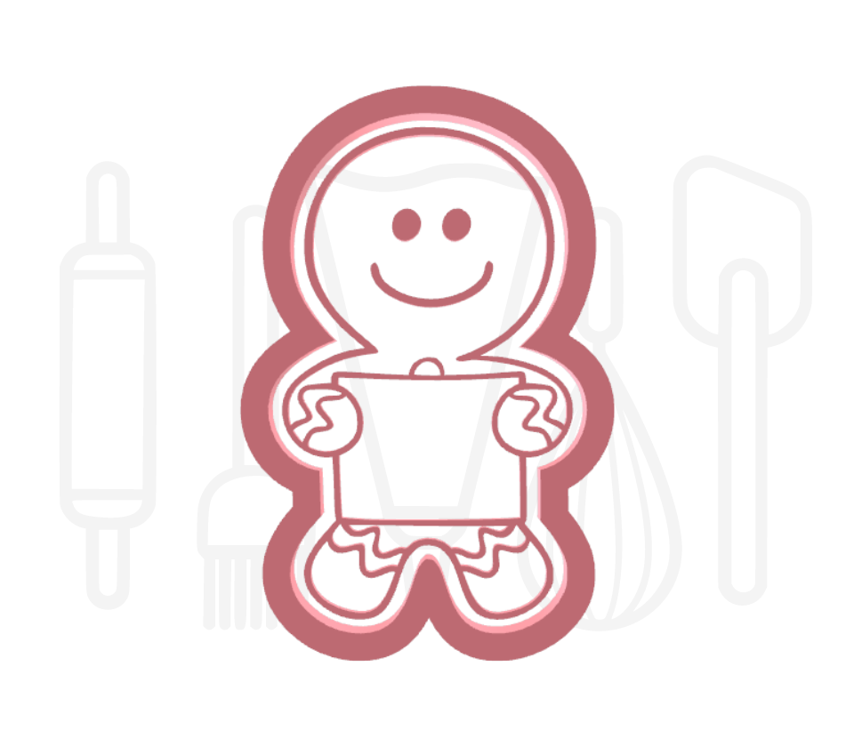 Gingerbread poppetje met naambordje uitsteker + stempel - 3D-geprint