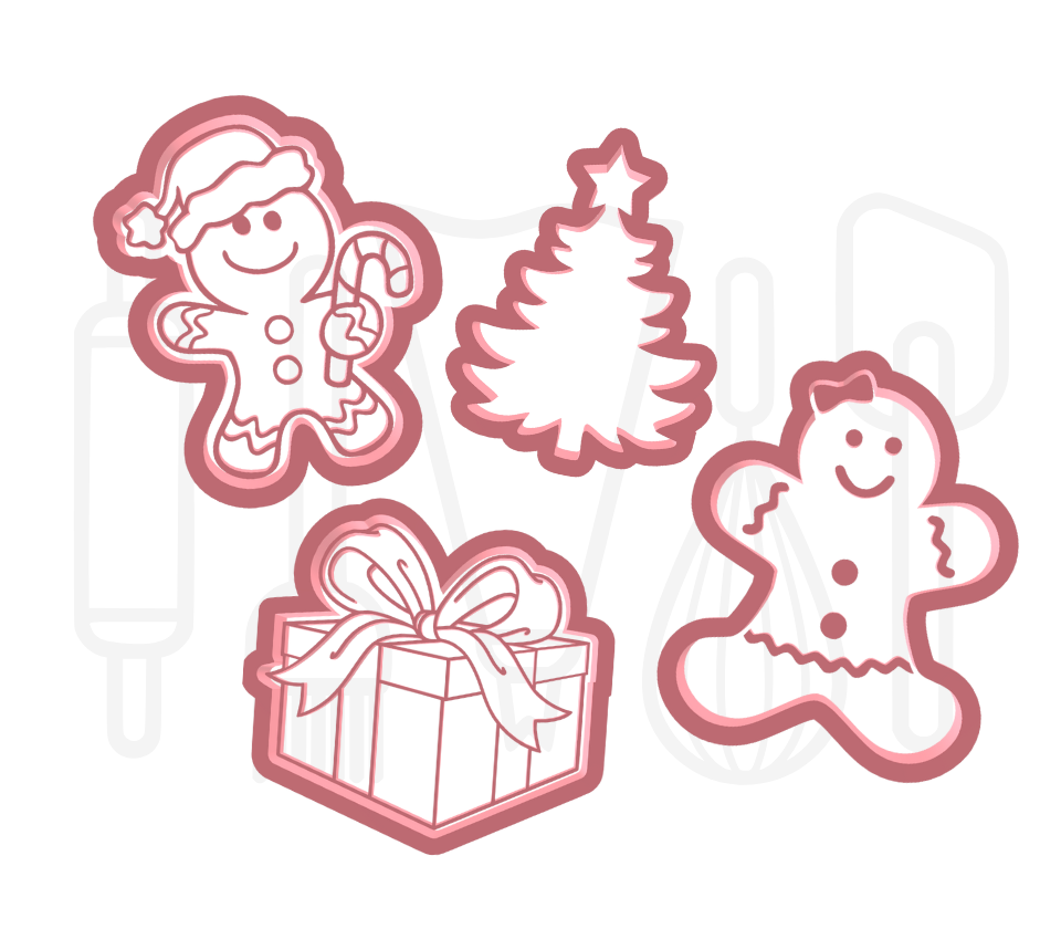 Met deze uitsteker maak je gemakkelijk en snel een koekje in de vorm van een gingerbread poppetje 9 cm, gingerbread poppetje met jurk 7,5 cm, kerstboom (1) 7,5 cm en een cadeau van 7,5 cm. Super leuk voor op kerstavond. Het is te gebruiken als koekjesuitsteker maar ook voor het decoreren met fondant of marsepein. In plaats van koekjesdeeg kun je dan een dunne lap marsepein of fondant uitrollen.