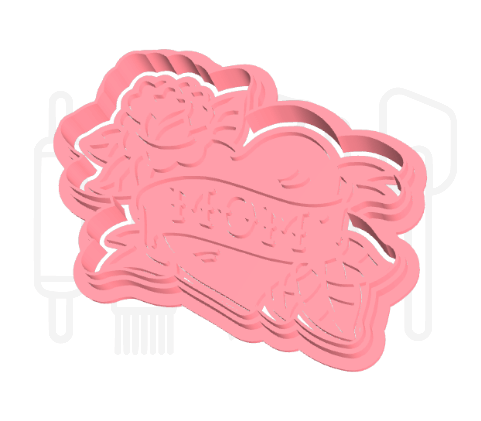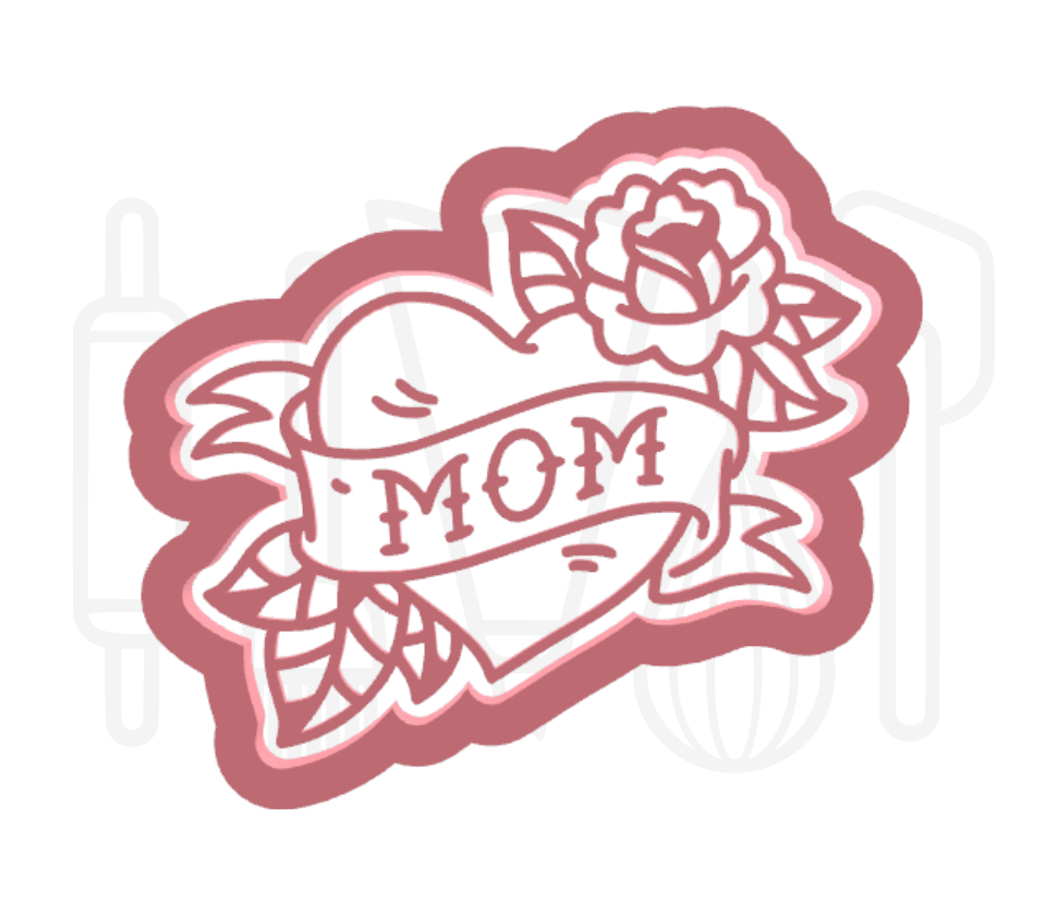 Mom in hart met roos uitsteker + stempel - 3D-geprint