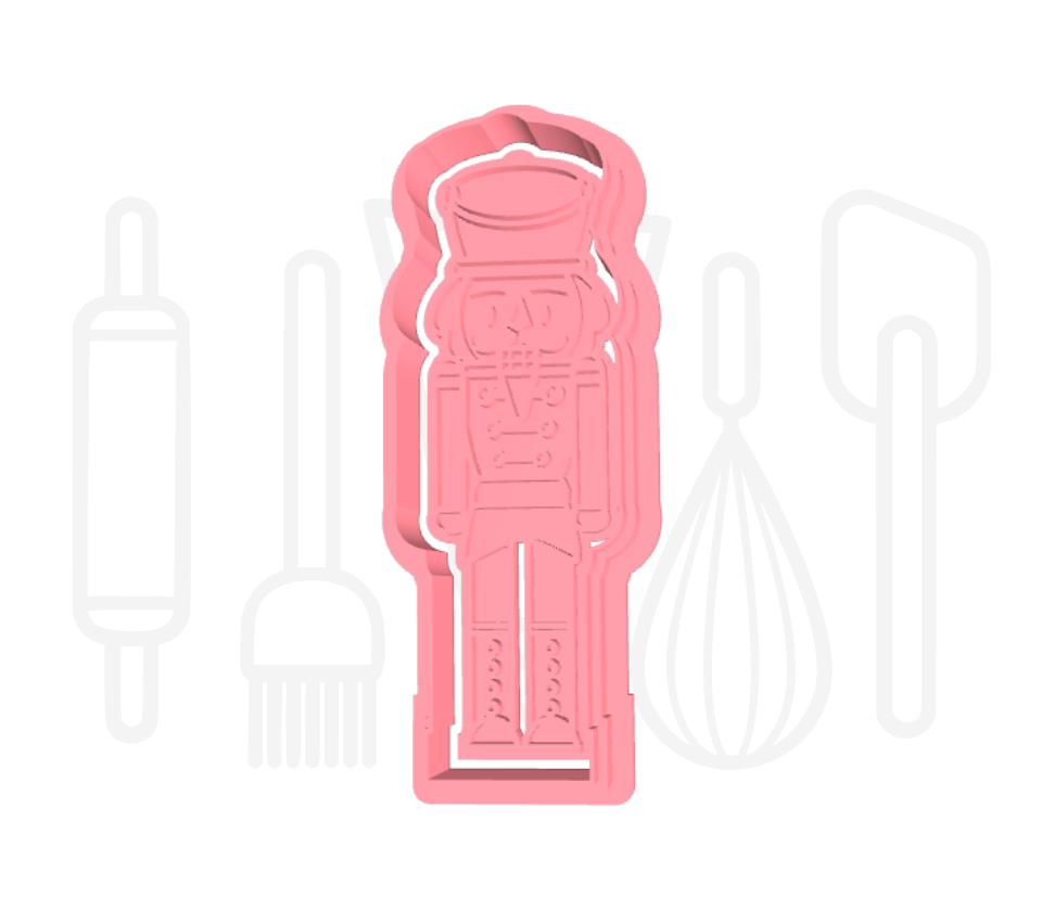 Met deze uitsteker met stempel maak je gemakkelijk en snel een koekje in de vorm van een notenkraker. Het is te gebruiken als koekjesuitsteker maar ook voor het decoreren met fondant of marsepein. In plaats van koekjesdeeg kun je dan een dunne lap marsepein of fondant uitrollen. Na het rollen druk je de stempel in het koekje (of fondant/marsepein). Zo maak je van een simpel koekje, een luxe koekje met een design. De uitsteker en stempel zijn beide losse producten en kunnen dus ook los van elkaar gebruikt worden.