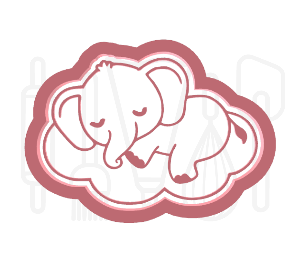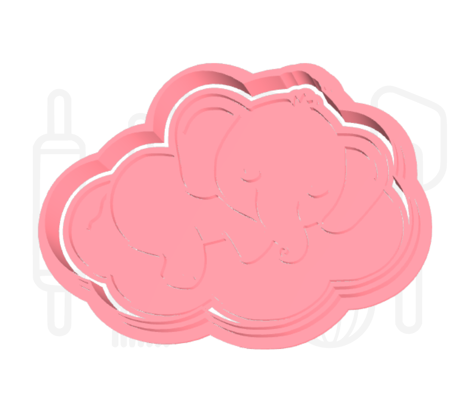 Olifant op wolk uitsteker + stempel - 3D-geprint