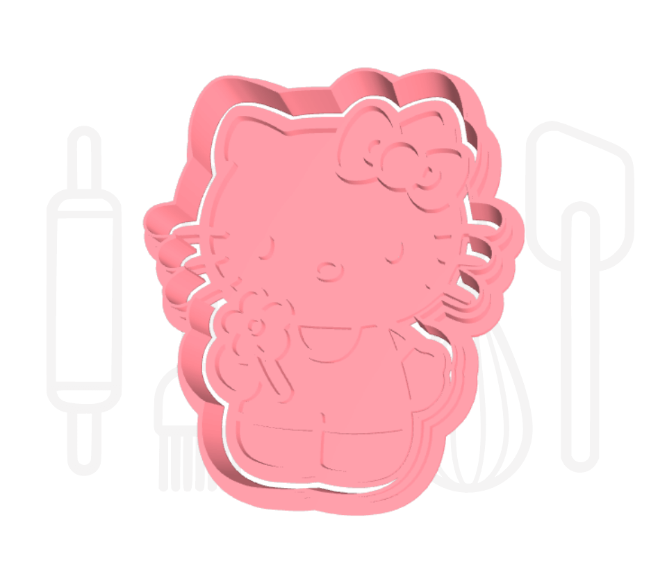 Poes met strikje uitsteker + stempel - 3D-geprint