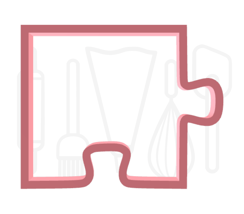 Met deze uitsteker maak je gemakkelijk en snel een koekje in de vorm van een puzzelstuk. Het is te gebruiken als koekjesuitsteker maar ook voor het decoreren met fondant of marsepein. In plaats van koekjesdeeg kun je dan een dunne lap marsepein of fondant uitrollen. Na het rollen druk je de stempel in het koekje (of fondant/marsepein). Zo maak je van een simpel koekje, een luxe koekje met een design. De uitsteker en stempel zijn beide losse producten en kunnen dus ook los van elkaar gebruikt worden.