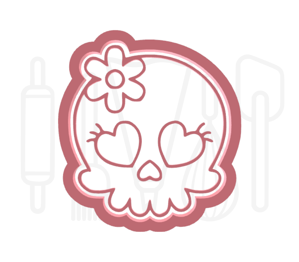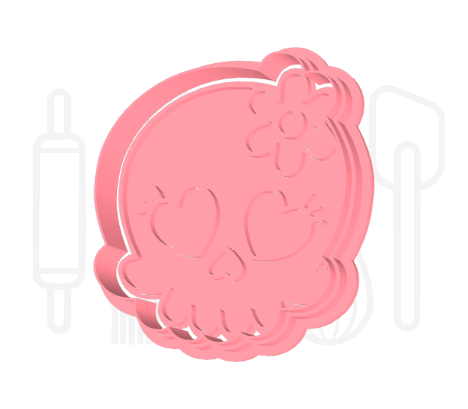 Skelet hoofd met bloem uitsteker + stempel - 3D-geprint