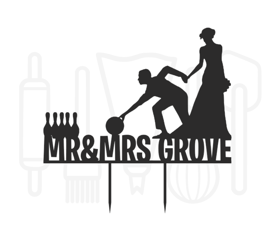 Taarttopper - Bowlend bruidspaar mr & mrs + achternaam