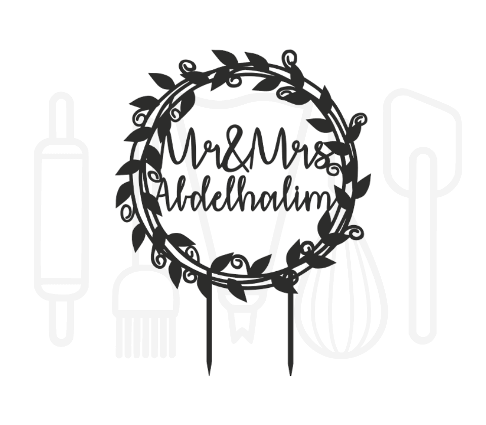 Taarttopper - Mr & Mrs Hele krans + achternaam