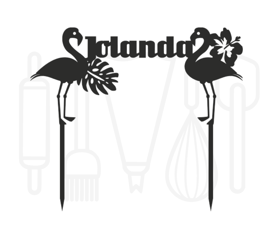 Taarttopper - Flamingo's + voornaam met tropische bladeren