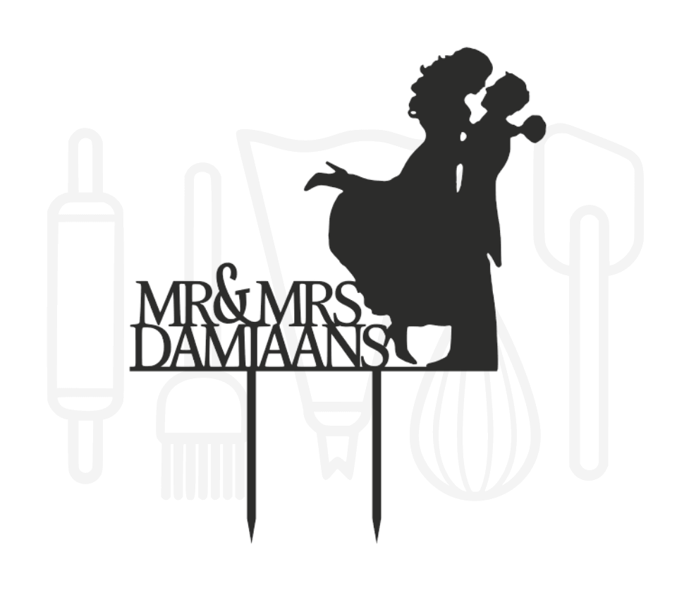 Taarttopper - Gelukkig bruidspaar mr & mrs + achternaam