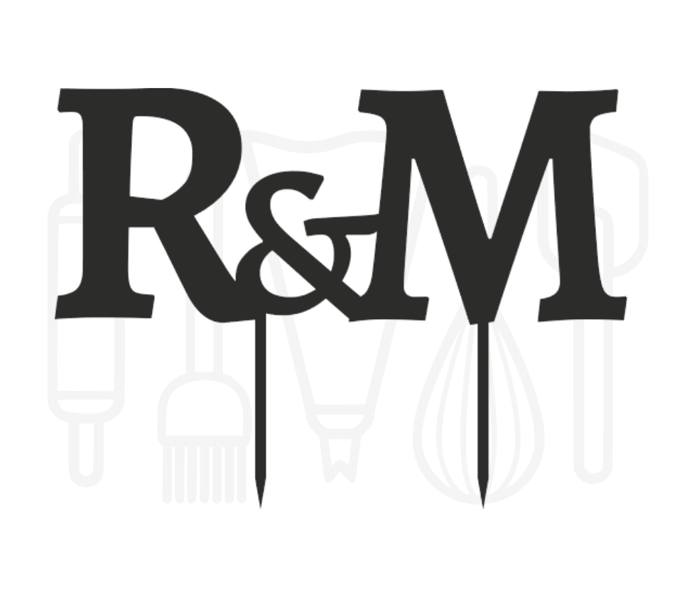 Afmeting taarttopper (exclusief prikkers): De taarttopper heeft een hoogte van 6,5 cm, de breedte is afhankelijk van de samenstelling van initialen.