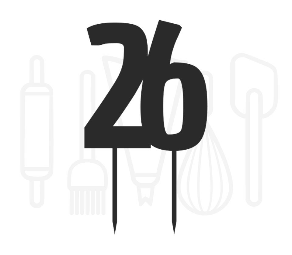 Afmeting taarttopper (exclusief prikkers): De taarttopper heeft een lengte van 8,5 cm, de breedte is afhankelijk van de gekozen leeftijd.