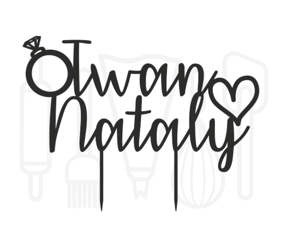 Afmeting taarttopper (exclusief prikkers): De taarttopper heeft een breedte van 14 of 16 cm, de hoogte is afhankelijk van de lengte van de voornamen.