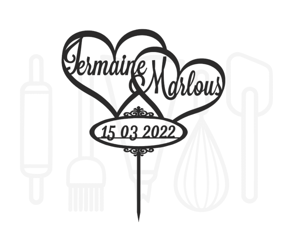 Taarttopper - Voornamen in harten + datum