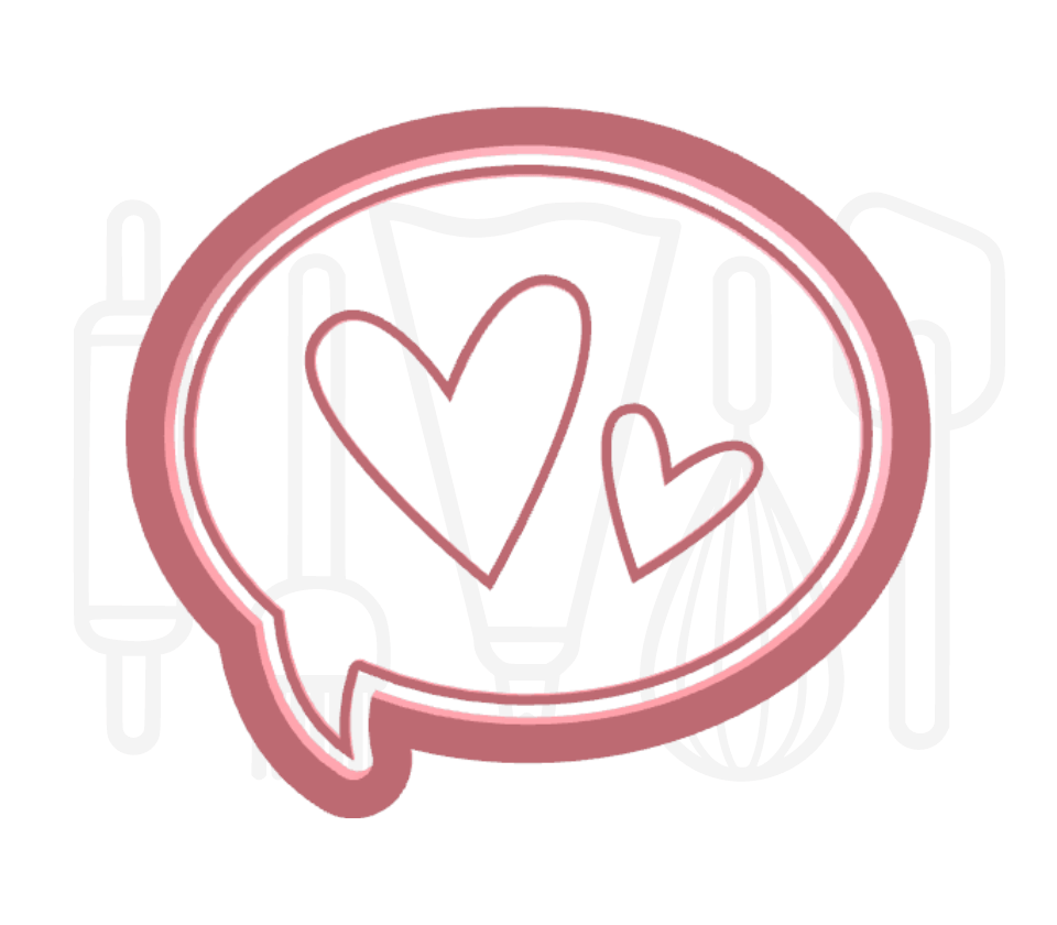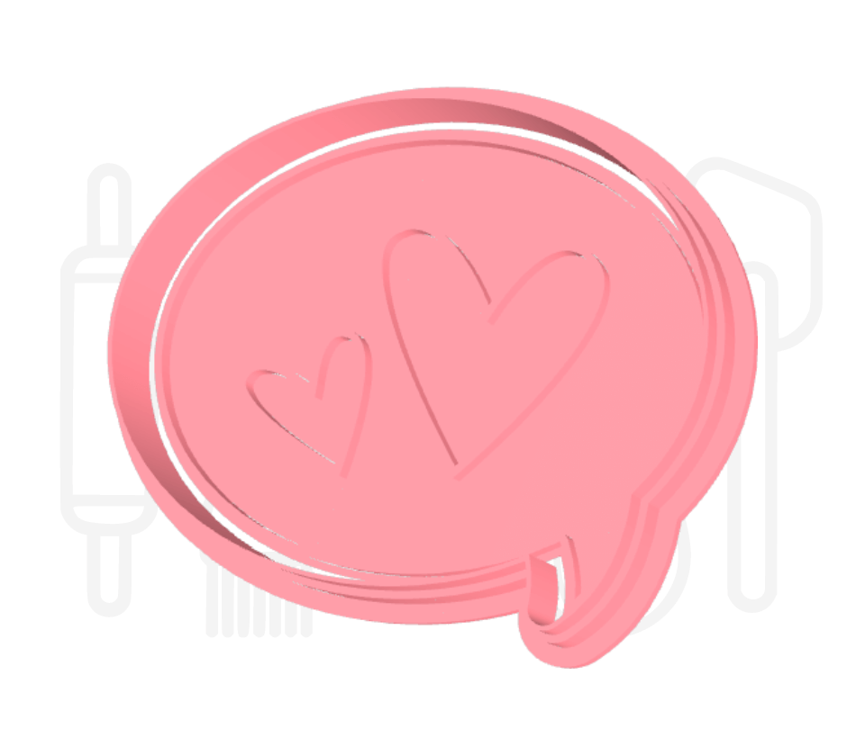 Tekstballon met harten uitsteker + stempel - 3D-geprint