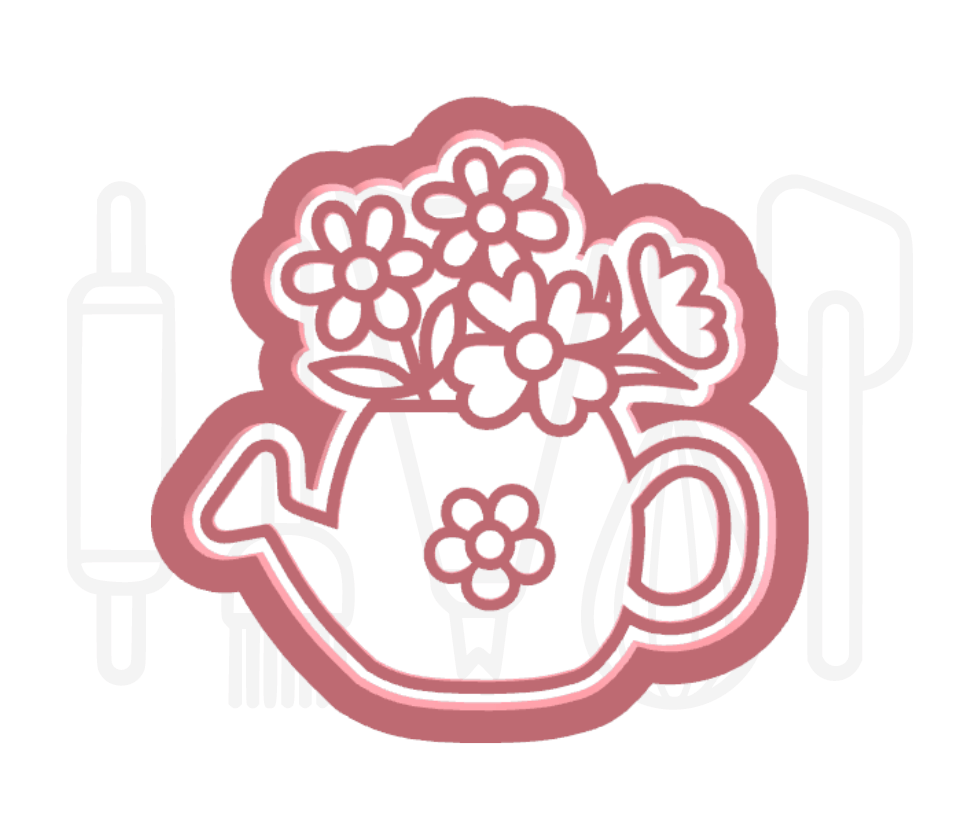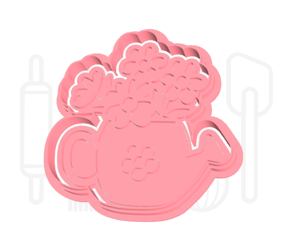 Theepot met bloemen uitsteker + stempel - 3D-geprint